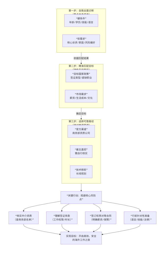 走直路的第一步,是转变思维:你不是在“找一份海外工作”,而是在规划一条跨国职业路径。这条路径的起点,是客观的自我认知;它的基石,是来自官方和权威渠道的精确信息。