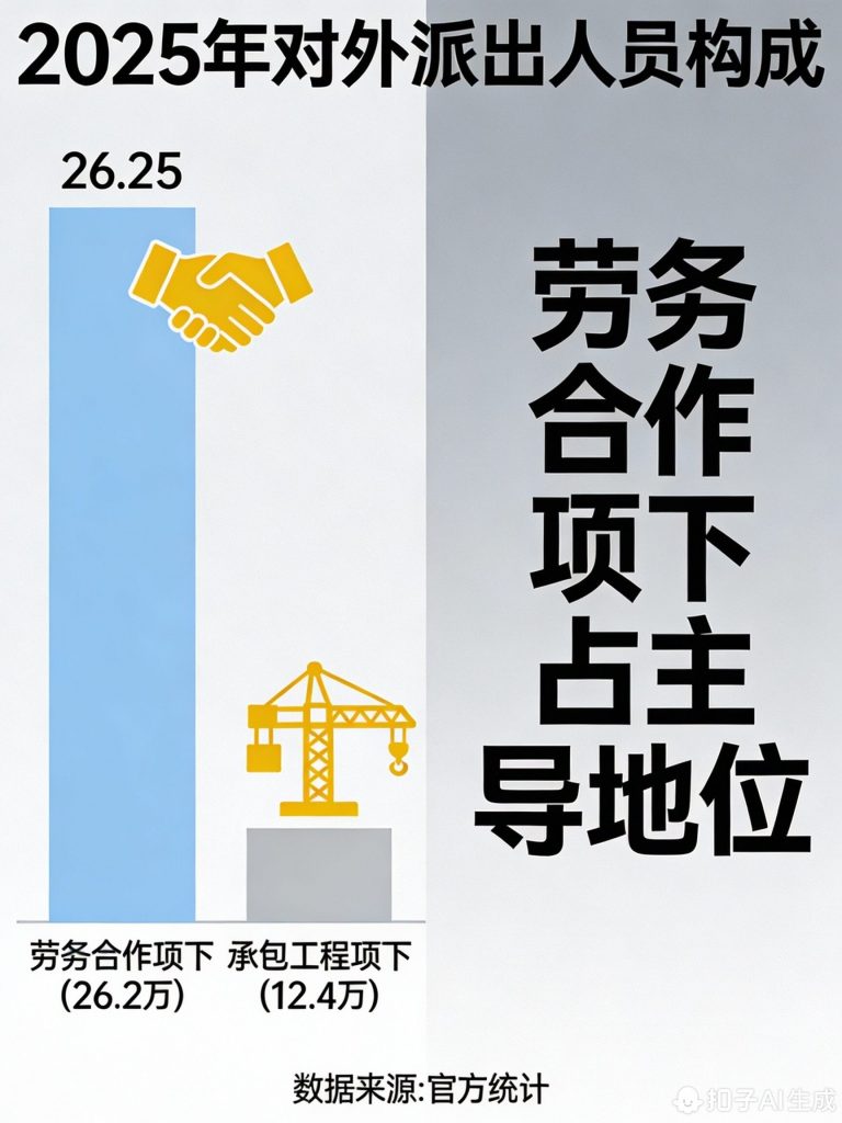 更为重要的是,派出结构正在发生具有深远意义的变化。传统的“承包工程项下”派出与更具市场导向的“劳务合作项下”派出,构成了两大支柱。以2025年1-11月为例,劳务合作项下派出26.2万人,占比接近68%,已成为绝对主力。这反映出市场化的、基于直接雇佣关系的劳务输出模式越来越成为主流。