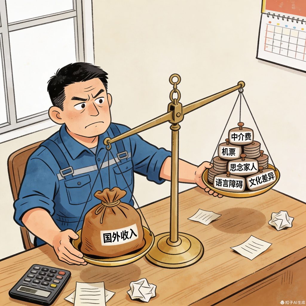 所以,看待国外工资,得把它减去这些“成本”,再除以在外的辛苦程度,看看剩下的“净收益”和时间成本,是不是真的比在国内干一份踏实工作强。对于有家庭牵挂的中年工友,这笔账尤其要算精细。
