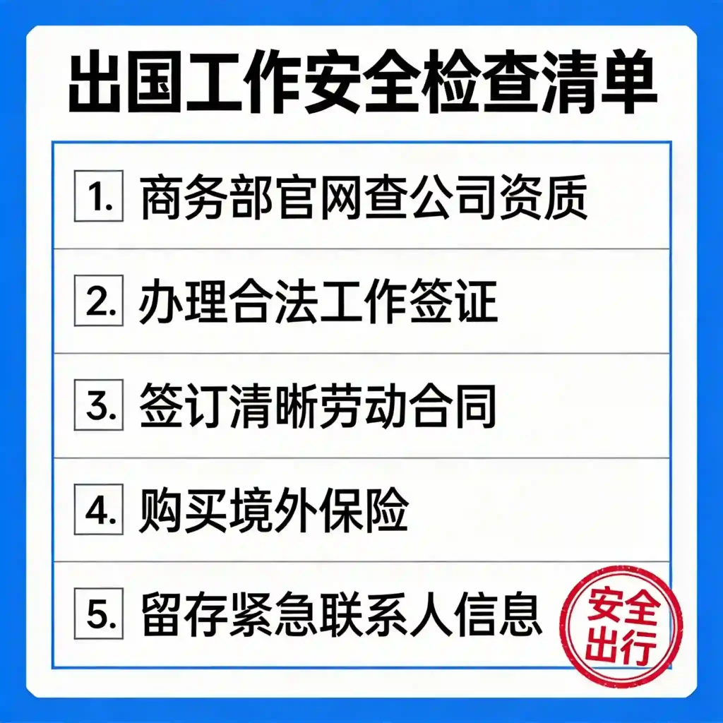 • 唯一可信中介:国家商务部备案企业。 通过 “商务部业务系统统一平台对外劳务合作企业名录” 查询和选择公司。这是你的“护身符”。