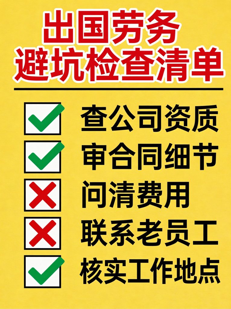 - 优点: 合法、安全、有保障。 关键动作: 上“中国对外劳务合作企业名单”官网,查正规公司!