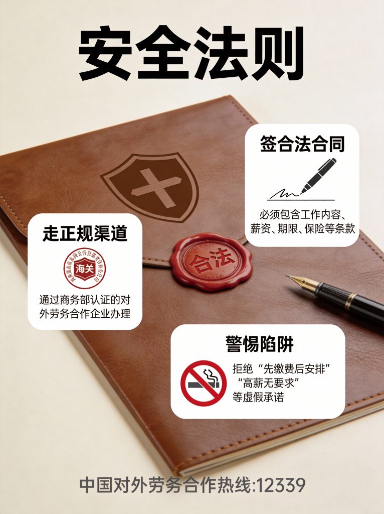 无论你去哪个国家,有一条铁律比选择国家更重要:走正规渠道,签合法合同。这是你在海外唯一的“护身符”。