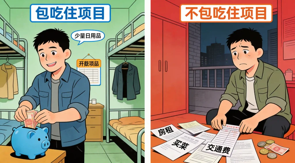• 包吃住项目是“存款加速器”:如以色列的建筑项目、部分日本工厂项目。这类项目能让你每月生活开销降到极低(1000-2000元),你的收入绝大部分都能直接转化为储蓄。这是存款效率最高的选择。