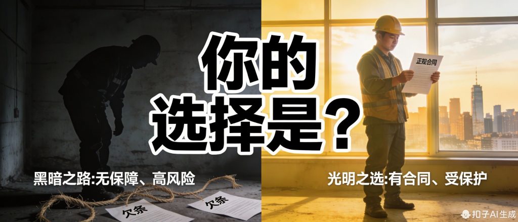 | 工资保障 | 合同约定,受法律保障,按时足额发放 | 口头承诺,随意克扣、拖欠,追讨无门 |