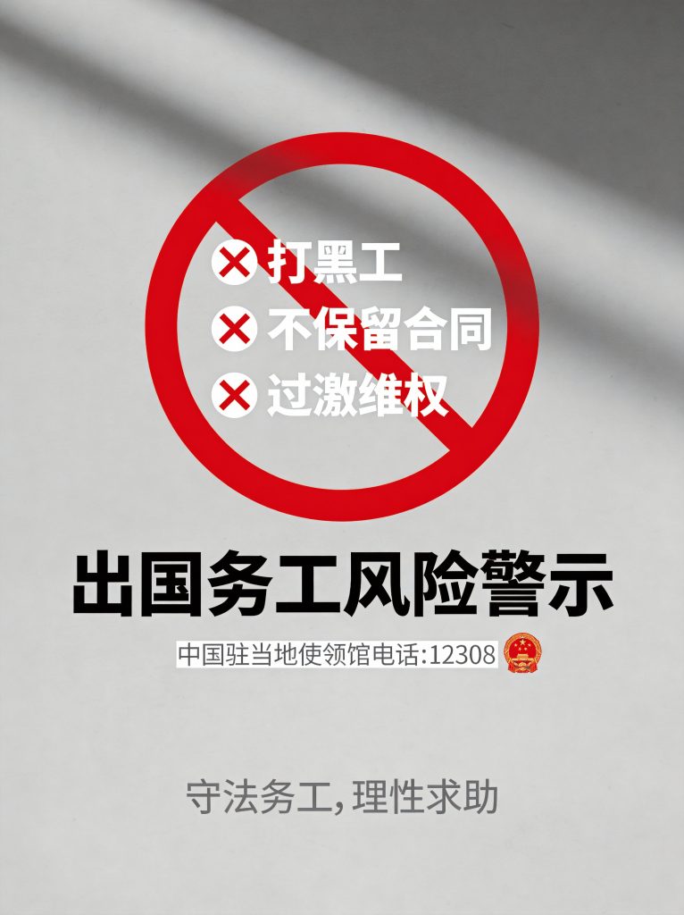 如果遇到雇主拖欠工资、工作条件恶劣,或者发生工伤等纠纷,正确的解决渠道是:先依据《雇佣合同》与雇主沟通;无效则立即联系国内派出公司在当地的代表;若仍无法解决,务必向中国驻当地使领馆寻求帮助。切记,任何情况下都应理性、合法维权,避免过激行为。