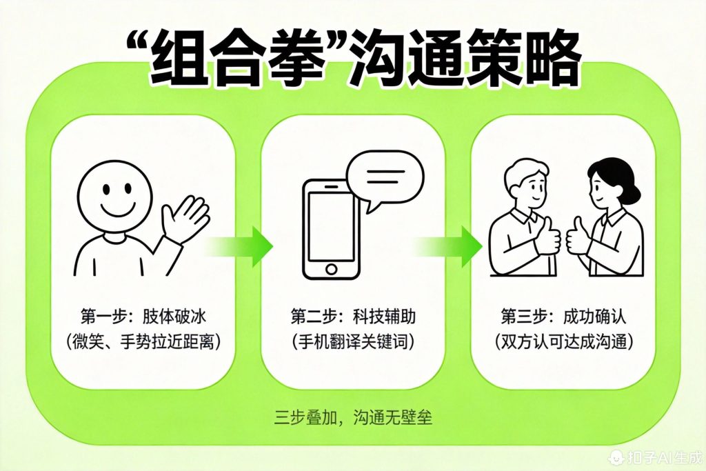 最高效的沟通,是“组合拳”。将无声的手势、有形的科技和你努力学到的几个核心词汇结合起来。