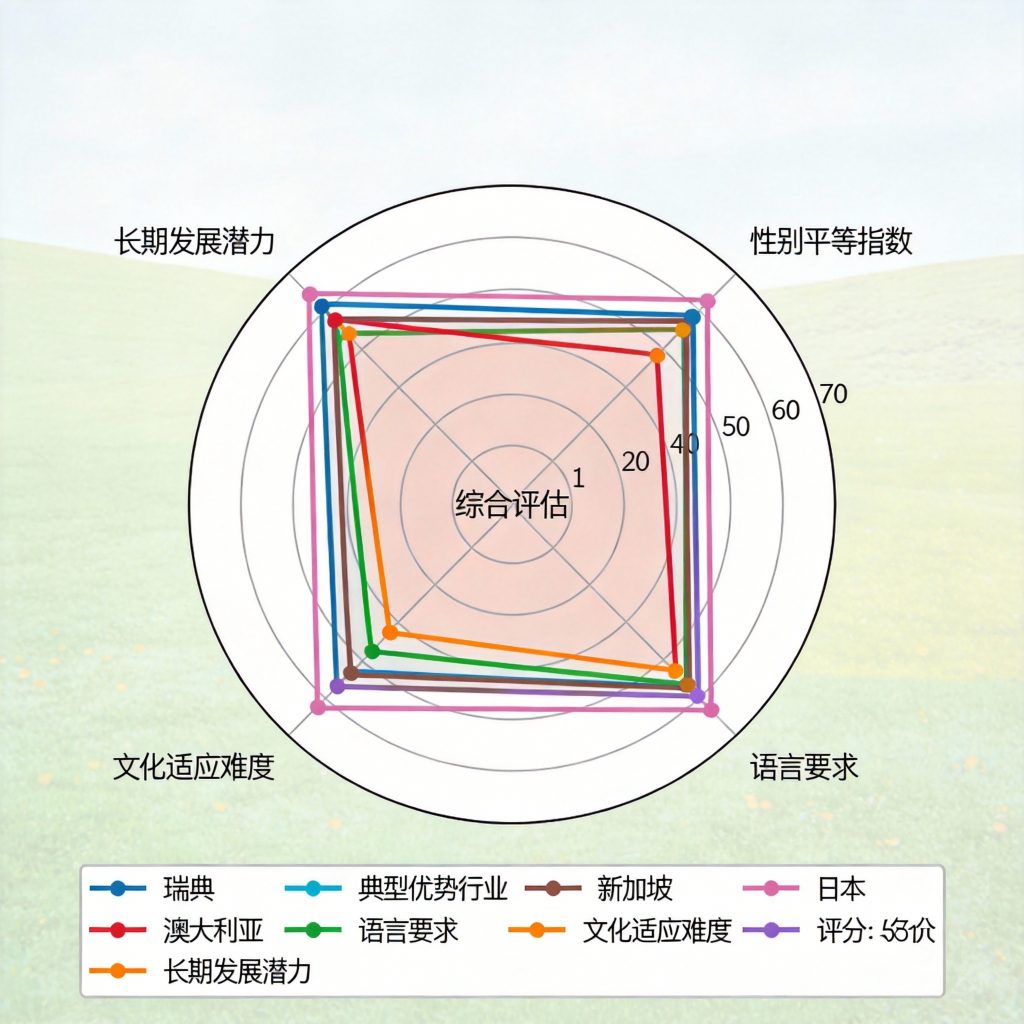 全球最高,政策支持完善,性别平等度高。专业技术类、管理类、护理、教育。语言和文化适应挑战大,生活成本高,气候寒冷。