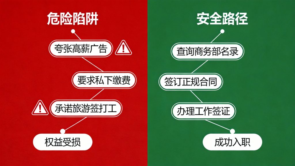 对于海外求职者,尤其是女性,安全永远是第一位的。网络上参差不齐的海外招工信息背后,往往暗藏骗局。